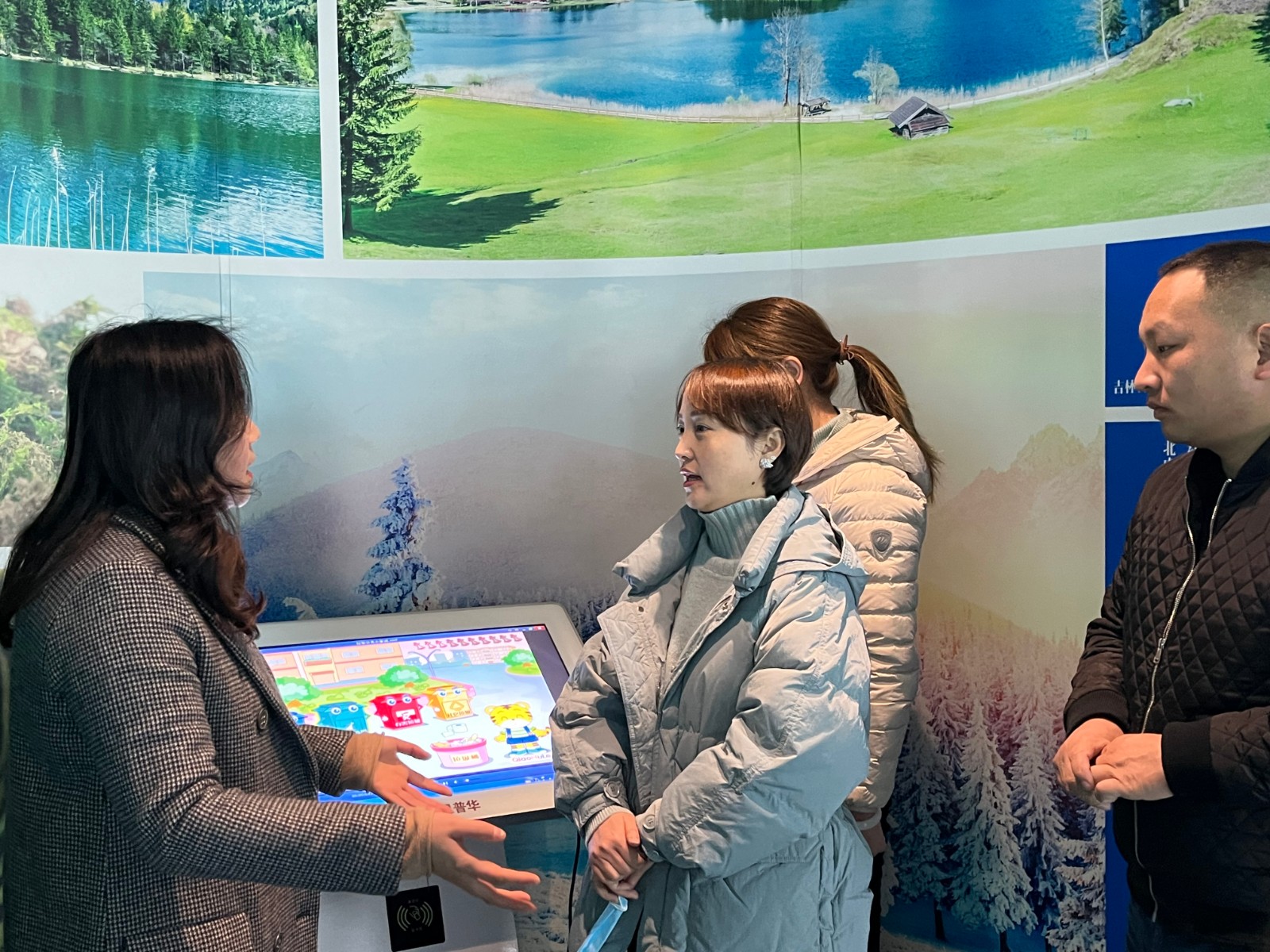 首先,步入环保馆警示区,幼儿园的老师们对这款自主设计的“垃圾分类小游戏”很感兴趣,王园长觉得它也很适合幼儿小朋友用来学习巩固垃圾分类的小知识。接着,在教学区,环保创意师——高林平老师为大家作了项目的全面介绍,使得调研团队对我校环保项目的体系化有了整体的了解。最后,大家参观了馆外展示区,交流分享我校在垃圾分类的具体措施。