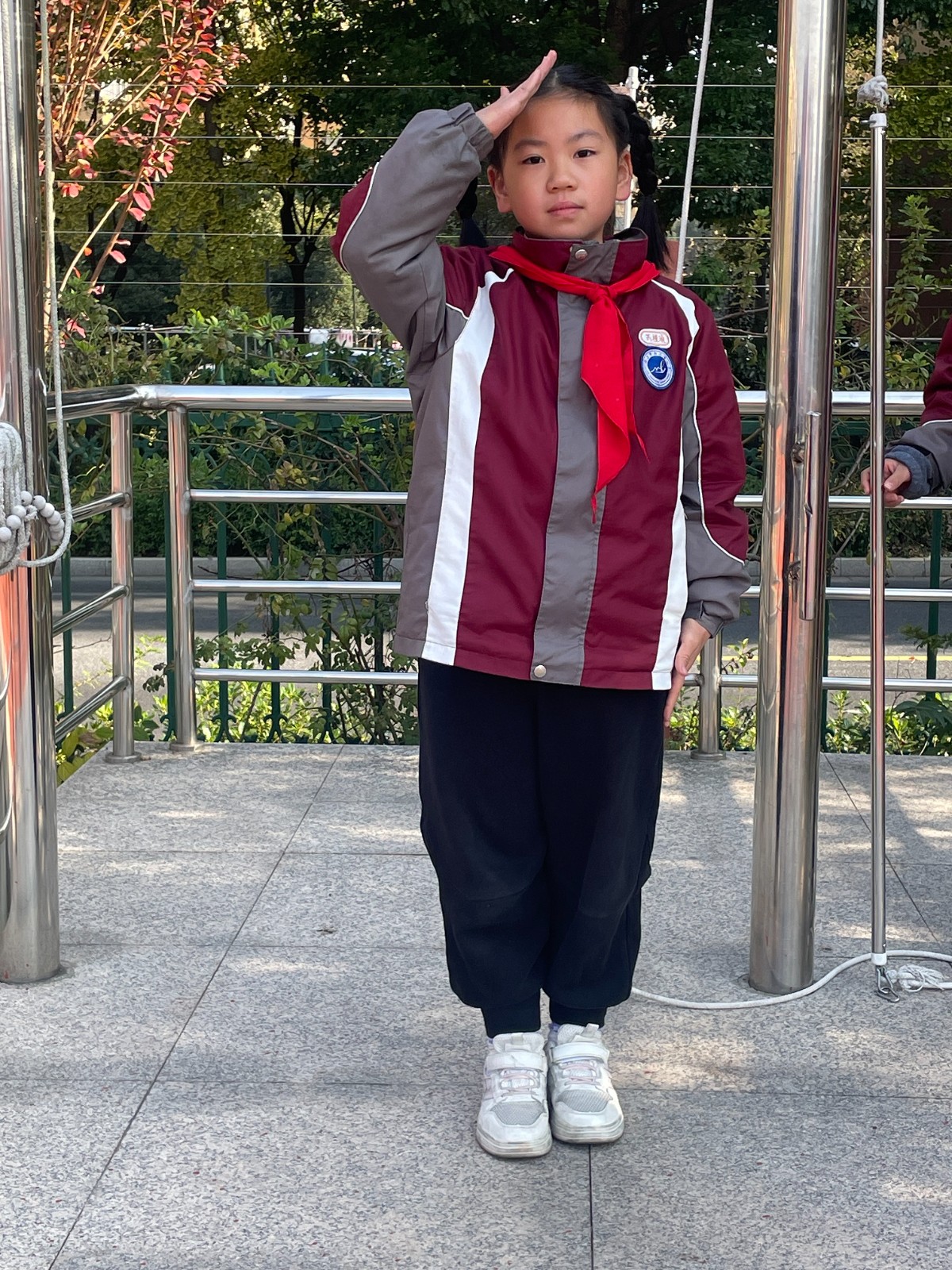 本周担任升旗手的是芮槿瑜和吴天泽两位优秀的少先队员,我们一起来欣赏他们的风采。